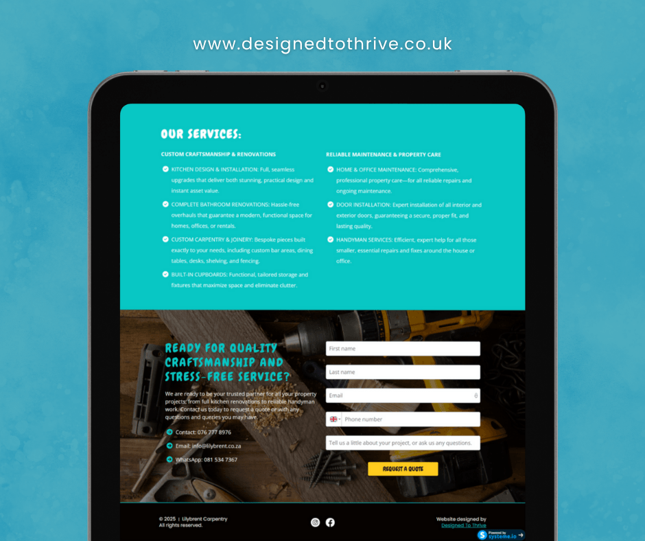 The Result: A professional, ready-to-launch website built in days, not months. The Systeme.io platform now allows Lilybrent to capture and manage leads and execute their email marketing all from one central hub, turning the website into a genuine business asset.