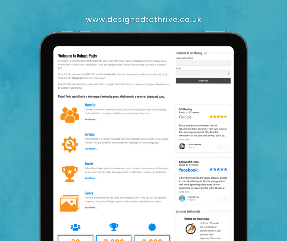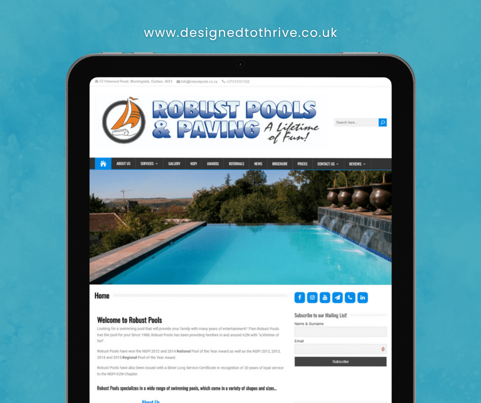 I designed this highly professional website on WordPress to really show off the quality and reliability of this top-tier pool and paving installer. I used clean lines and amazing, high-resolution photos to immediately communicate trust and luxury, making it easy to showcase their impressive portfolio and the industry awards they've won.