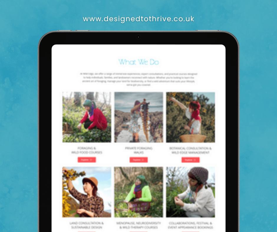 I designed this bold, loud, and beautiful Wix Studio website for Wild Edge UK, a business where nature, nourishment, and knowledge intertwine. The colour palette, inspired by neon pop with a touch of wild, reflects the owner's vibrant personality. My focus was on creating a visually engaging and user-friendly platform that effectively showcases their diverse offerings.